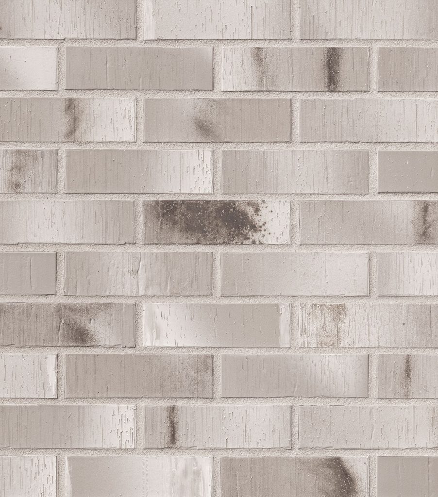 Tai šviesiai pilkos klinkerio fasado plytelės su balkšvais tonais ir išsklaidytomis tamsesnėmis pilkomis bei rusvomis dėmėmis, kurios sukuria subtilų kontrasto ir tekstūros efektą – modernus, tačiau šiltas sprendimas išskirtinei fasado išvaizdai.